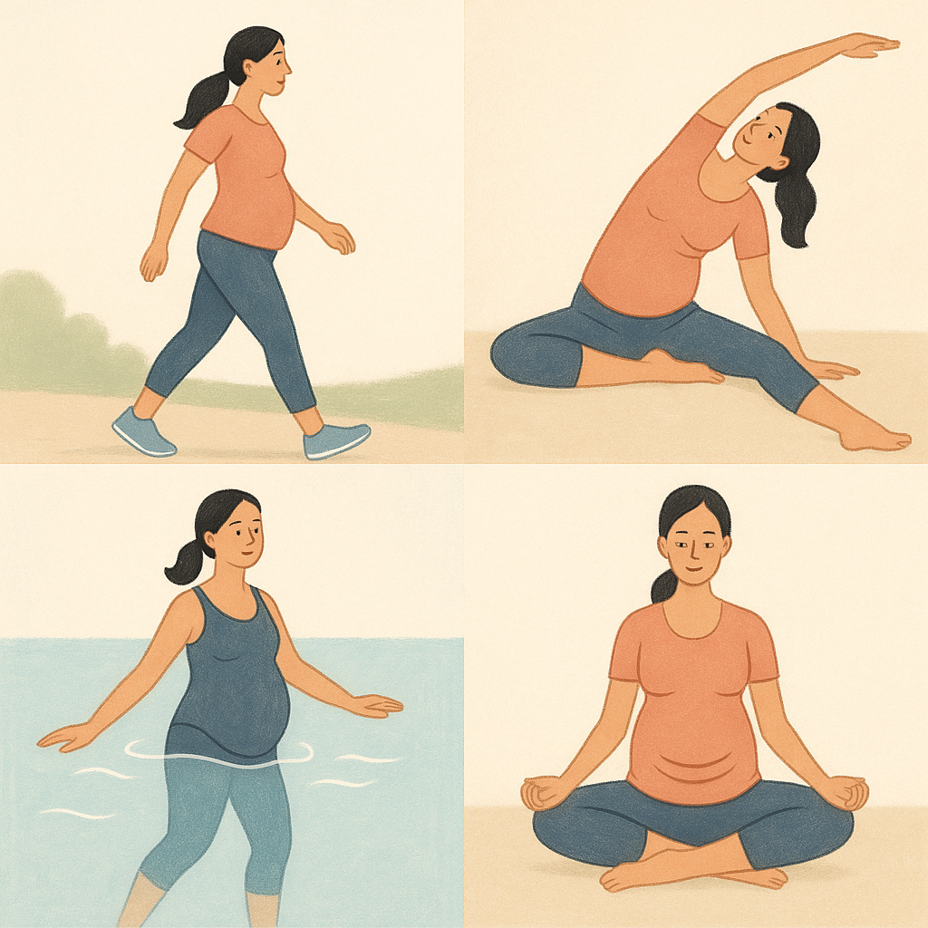 - 적절한 의류: 땀 흡수·통기성 좋은 임신용 레깅스, 지지력 좋은 스포츠 브라