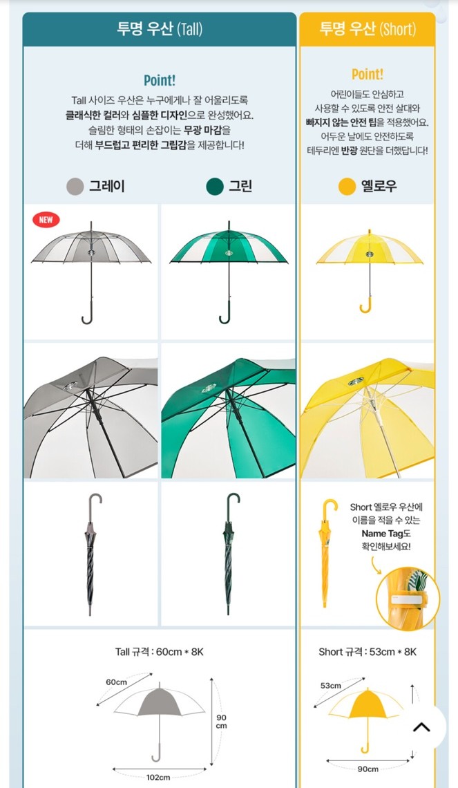 시야 확보는 물론, 실용성과 디자인 모두 챙긴 스타벅스 한정 우산! 정말 가장 마음에 들었던 부분이 시야 확보 부분이에요. 유아는 물론 초등 저학년 아이들까지도 우산 살 때는 꼭 시야확보되는 투명우산을 사야 하는 것 아시지요? 사실 성인들도 우산 들면 시야 확보가 어려운데 이 우산은 투명인데 다른 투명 우산보다는 훨씬 튼튼해서 작년에 산 우산 아직 멀쩡하고 안전하게 잘 쓰고 다니고 있어요. 이번 기회 놓치지 말고 꼭 만나보세요!