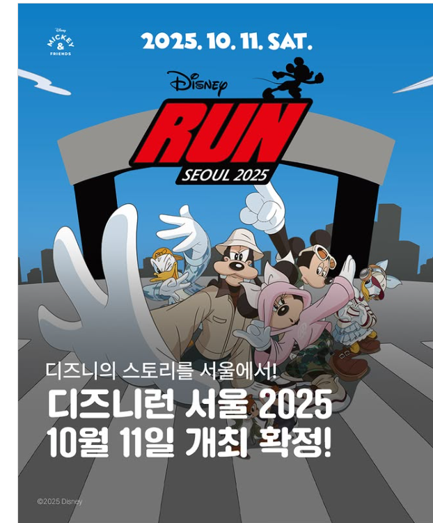 올해 10월 11일, 서울 여의도공원 문화의마당에서 국내 최초로 열리는 **디즈니런 서울 2025 (Disney Run Seoul 2025)**가 개최됩니다!